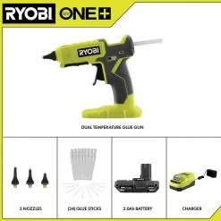 RYOBI ONE+ 18V Cordless Dual Temperature Glue Gun Kit with 2.0 Ah Battery and 18V Charger with FREE Glue Sticks (24-Piece)