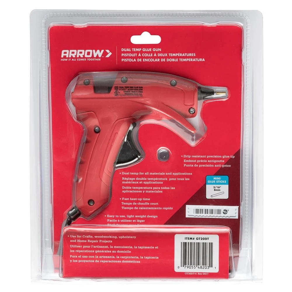 Don’t have all day to wait for your glue gun to heat up? Arrow’s GT20DT Dual Temp Glue Gun is the tool that accommodates busy schedules and crafting goals, thanks to its high-temp setting. This is ideal for projects utilizing heavy-duty materials that require maximum bonding capacity. If you’re working on a project that requires a graceful finesse and a gentle glue gun, the GT20DT Dual Temp Glue Gun has a low-temp setting, perfect for fragile crafts that require glue sticks to melt at lower temperatures to preserve the delicate crafting materials. This lightweight, ergonomic tool is conveniently designed for any operator to use.