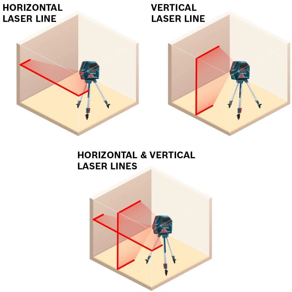 - Easy-to-use laser setup modes projects vertical, horizontal and cross lines