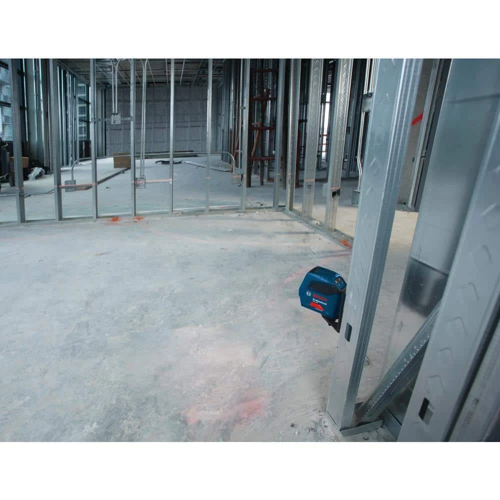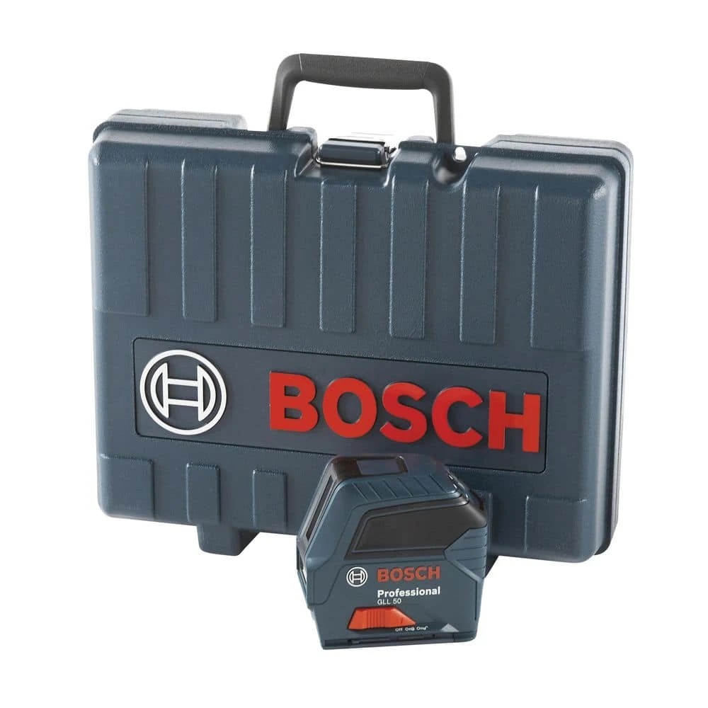 The Bosch GLL 50 Self-Leveling Cross-Line Laser Kit features a laser with vertical, horizontal and cross-line modes that projects 2-lines independently or together. This permits a broad array of alignment and leveling applications. The laser lines are visible up to 50 ft., with an accuracy of plus/minus 1/8 in. at 33 ft. The included BM3 Positioning Device offers quick setup in ceiling grid applications and free-standing mode with its retractable feet. This laser is built with sturdy over-molded construction for durability.