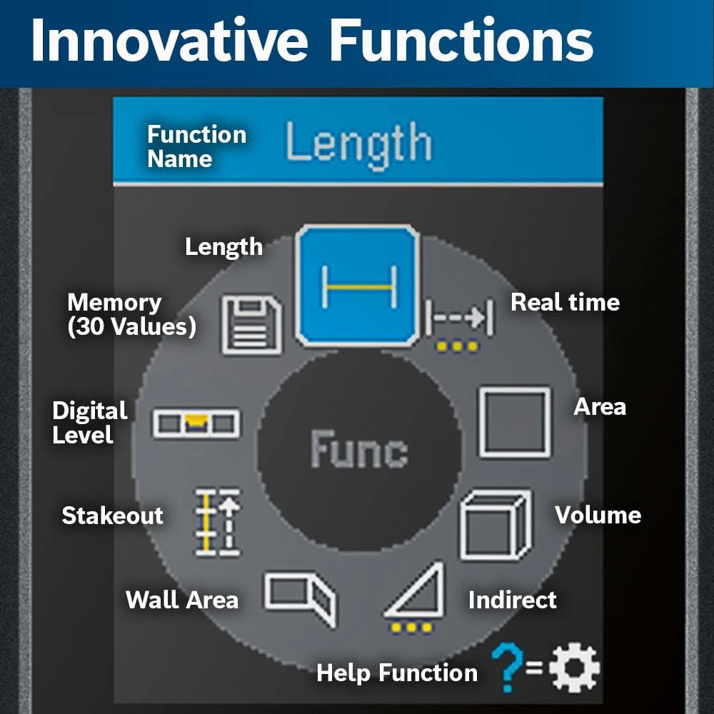 - Bluetooth smart 4.2 technology – allows measurements to be digitally transferred to a smart phone or tablet using the free Bosch MeasureOn app
