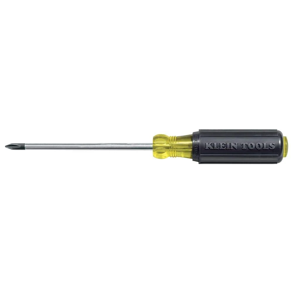 The Klein Tools 3-Inch (76.2 mm) Phillips-Tip Screwdriver features a durable black tip that is precision-forged and ground with square edges to fit screw openings securely. Its shaft will not bond or twist in normal use due to integral flanges that provide an extra-strong, torque-proof anchor in the handle. This screwdriver is made of high-quality tempered steel.