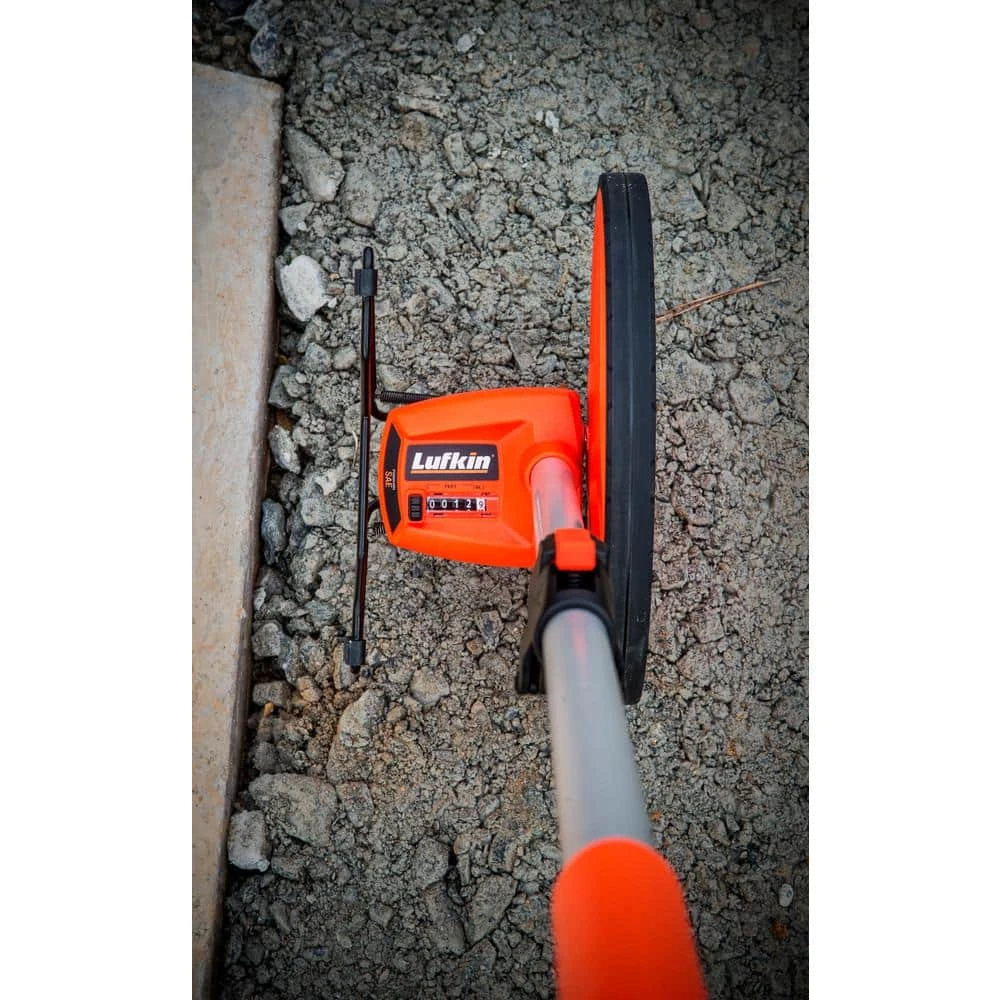 Suitable for measuring vertical, horizontal or curved surfaces, the Lufkin Large Contractors Measuring Wheel displays surface dimensions in inches and feet for quick and accurate distance calculations. It features a 12-1/2 in. wheel with rubber tire for superb traction on job sites with uneven terrain or long indoor expanses. The analog counter dial calibrated to the wheel rolls over to zero after reaching 10,000 ft.