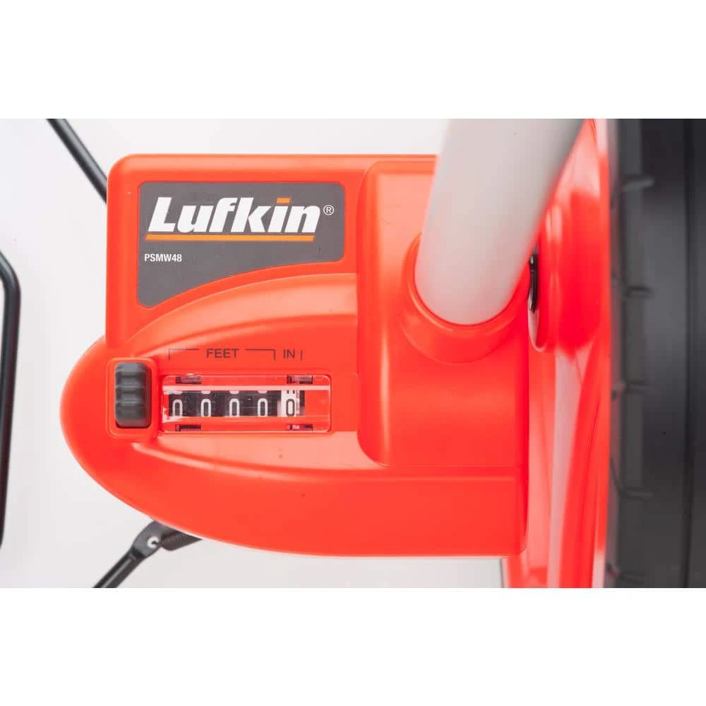 Suitable for measuring vertical, horizontal or curved surfaces, the Lufkin Large Contractors Measuring Wheel displays surface dimensions in inches and feet for quick and accurate distance calculations. It features a 12-1/2 in. wheel with rubber tire for superb traction on job sites with uneven terrain or long indoor expanses. The analog counter dial calibrated to the wheel rolls over to zero after reaching 10,000 ft.