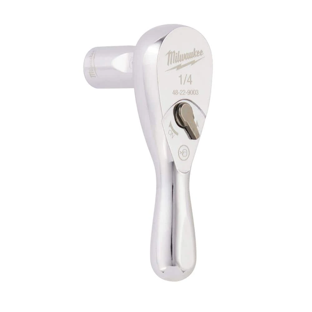 The Milwaukee 1/2 in. Drive 24 in. Breaker Bar has an alloy steel construction forged for strength. This ratcheting breaker bar has a 180° swivel head for use in multiple angles and an ergonomically designed handle for comfort. The chrome plated finish provides durability and resistance to corrosion. The 1/2 in. Drive 15 in. breaker bar comes with a lifetime guarantee. The Milwaukee 1/4 in. Drive Stubby Ratchet offers 4° of arc swing, allowing access to work in tighter spaces. A slim-profile head and flush directional lever combined with the stubby handle length offers users increased accessibility. The all-chrome finish provides the ratchet with easy-cleaning. This stubby ratchet is backed by Milwaukee’s Mechanics Hand Tools Lifetime Guarantee.