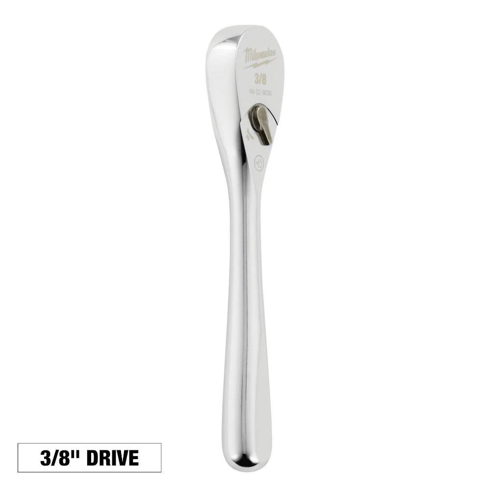 The Milwaukee 1/2 in. Drive 24 in. Breaker Bar has an alloy steel construction forged for strength. This ratcheting breaker bar has a 180° swivel head for use in multiple angles and an ergonomically designed handle for comfort. The chrome plated finish provides durability and resistance to corrosion. The 1/2 in. Drive 15 in. breaker bar comes with a lifetime guarantee. The Milwaukee 3/8 in. Drive Stubby Ratchet offers 4° of arc swing, allowing access to work in tighter spaces. A slim-profile head and flush directional lever combined with the stubby handle length offers users increased accessibility. The all-chrome finish provides the ratchet with easy-cleaning. This stubby ratchet is backed by Milwaukee’s Mechanics Hand Tools Lifetime Guarantee.