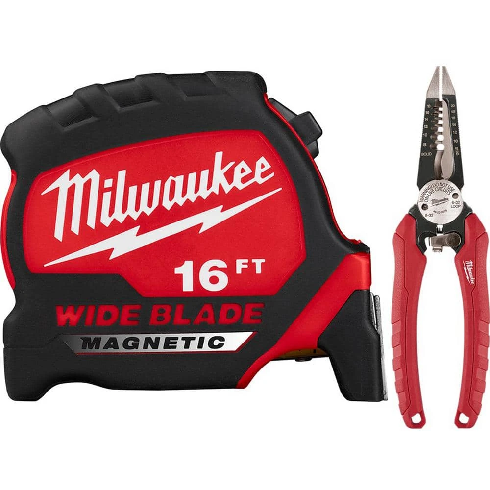 - Kit includes: one 48-22-0216M 16 ft. x 1.3 in. wide blade magnetic tape measure and one 48-22-3079 combination electricians 6-in-1 wire strippers pliers