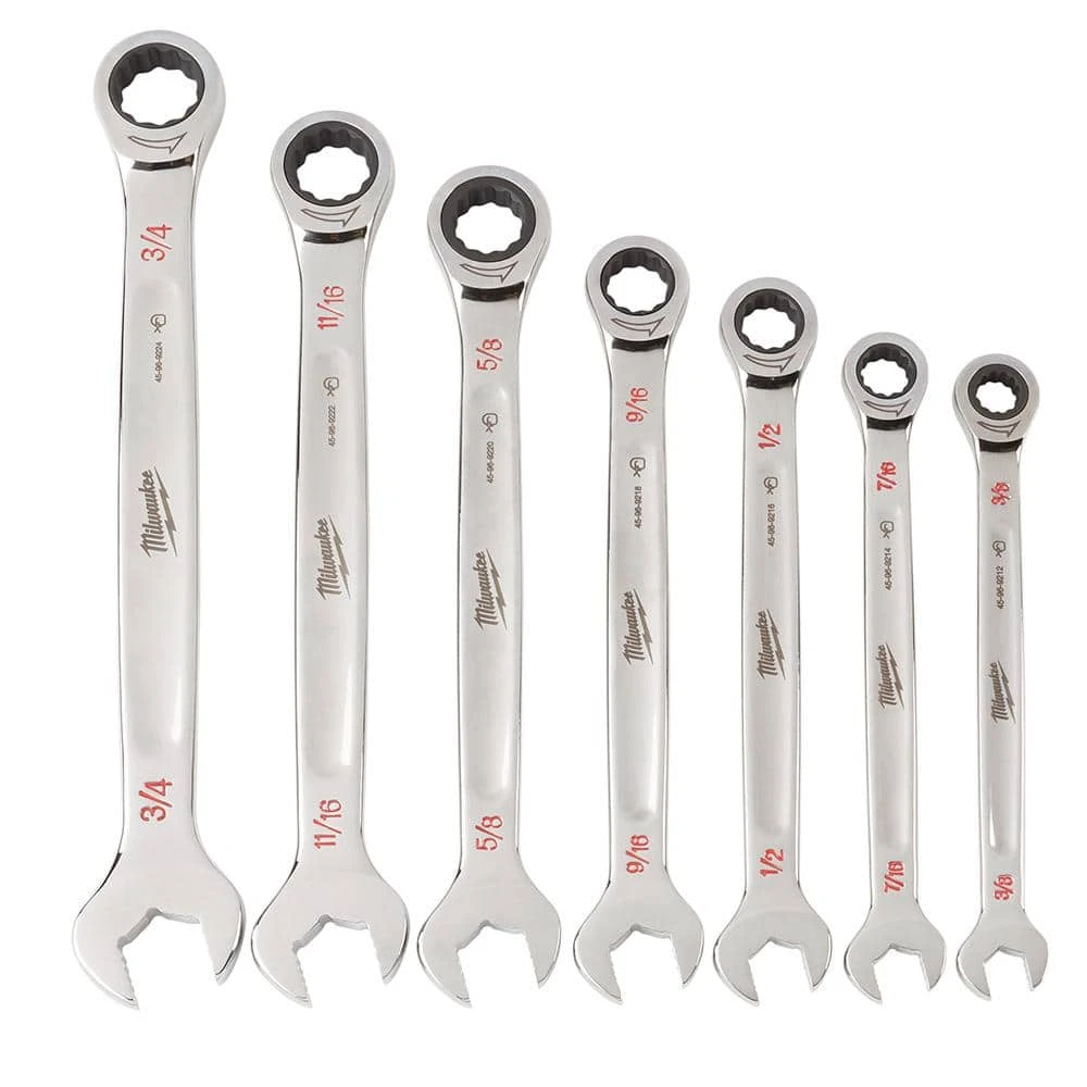 - 48-22-9406 and 48-22-9506: includes: one 8 mm ratcheting combination wrench, one 10 mm ratcheting combination wrench, one 12 mm ratcheting combination wrench, one 13 mm ratcheting combination wrench, one 14 mm ratcheting combination wrench, one 15 mm ratcheting combination wrench, one 17 mm ratcheting combination wrench
