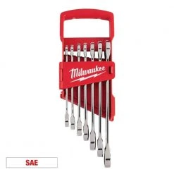 The Milwaukee 56-Piece 3/8 in. Drive Ratchet and Socket Set offers better access in tight spaces and maximum tool strength. The 90-tooth ratchet tool offers 4° of arc swing and a slim profile design. The innovative, wrench-compatible socket design has 4 parallel flats to help prevent rolling. Optimized socket geometry additionally helps reduce bolt rounding and stripping. Find each socket size stamped into the flats for easy-to-read visibility. This kit includes a removable inner tray and is designed to be stored long-term in a steel storage chest. It also comes with a durable carrying case for ultimate portability. The Milwaukee Ratcheting Combination Wrenches feature 2.5° of arc swing, allowing quick and efficient work. These mechanic’s wrenches feature durable double-stacked pawls in the ratcheting mechanism, offering the longest ratchet life and improved access with 144 ratcheting positions. MAX BITE Open-End Grip improves the ratchet wrench’s grip on nuts and bolts, offering 25% more torque than smooth-faced wrenches. Each combination wrench features an ergonomic I-Beam handle design for improved comfort. The ratcheting combination wrench set features ink-filled size labels for easy size identification, as well as quick distinction between SAE and metric sets. The 7-piece metric ratcheting combination wrench set comes in a portable locking storage tray, offering organization both on and off the jobsite. These Milwaukee Mechanics Sets feature a Lifetime Guarantee.