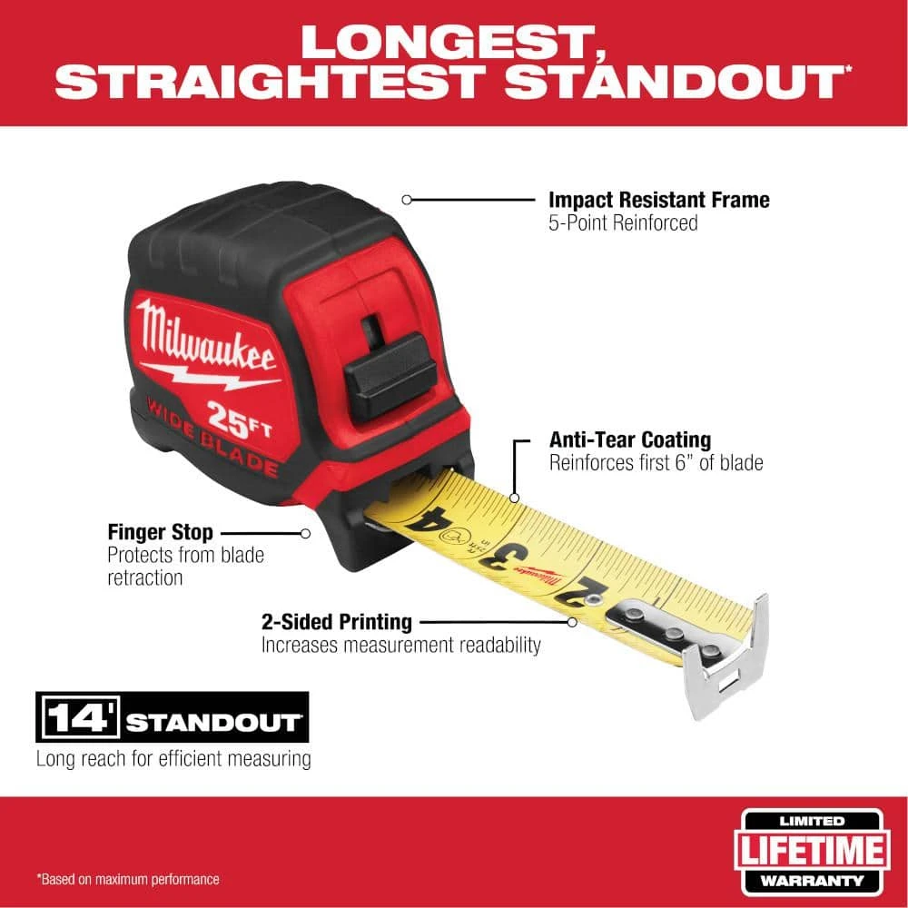 - Includes: (1) 30 ft. W Blade Tape Measure (48-22-0230) and (1) 4-1/2 in. Trim Square (MLSQ040)