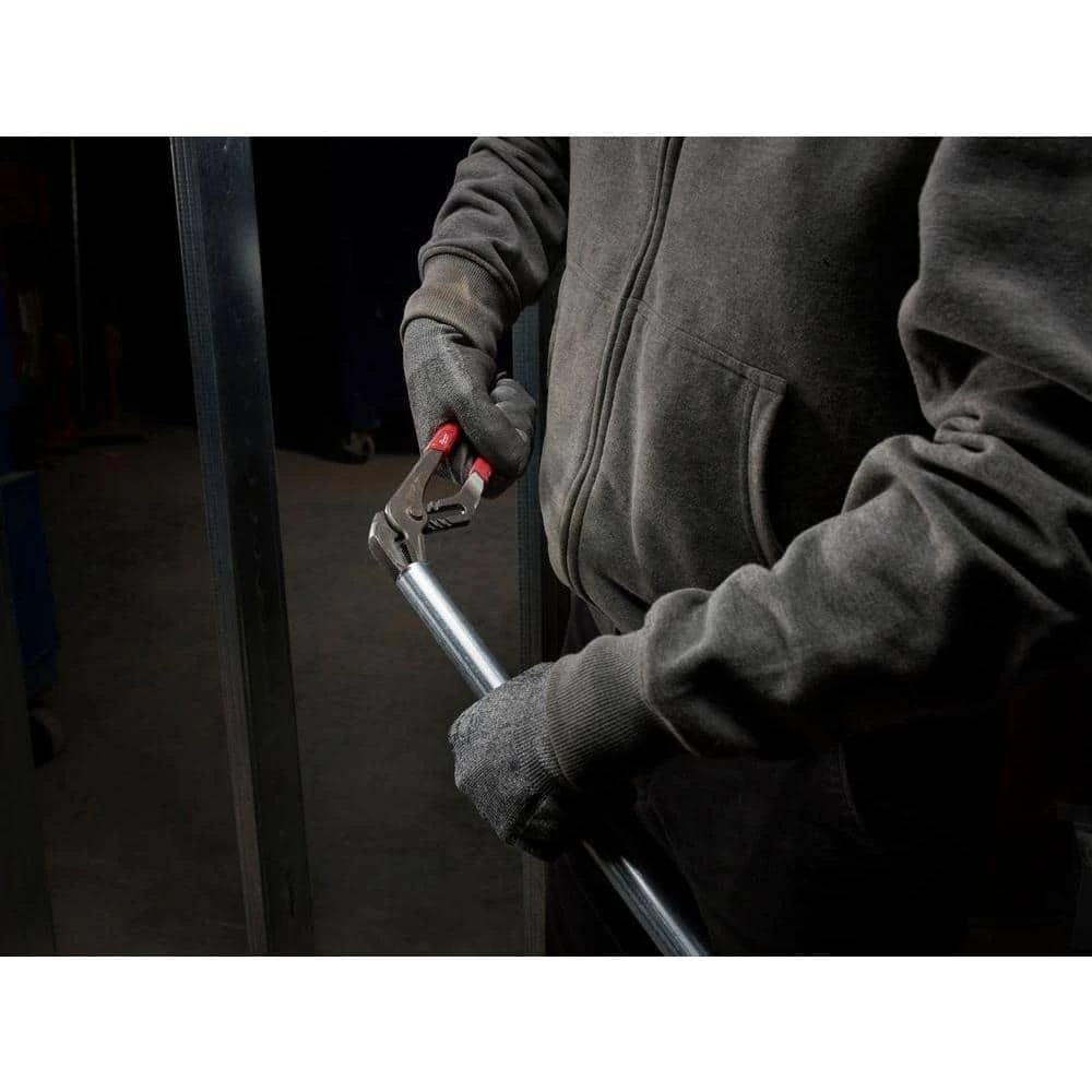 The Milwaukee 6 in. and 10 in. Ream and Punch Straight Jaw Pliers incorporate exposed metal handles (patent pending) and a precision ground pliers head for reaming pipe and punching electrical knock outs. The pliers teeth are hardened for secure grip over the life of the tool. Milwaukee pliers feature slim profile over-molded comfort grips, which will not peel under jobsite conditions. All Milwaukee pliers are forged for strength and feature rust protection for long life.