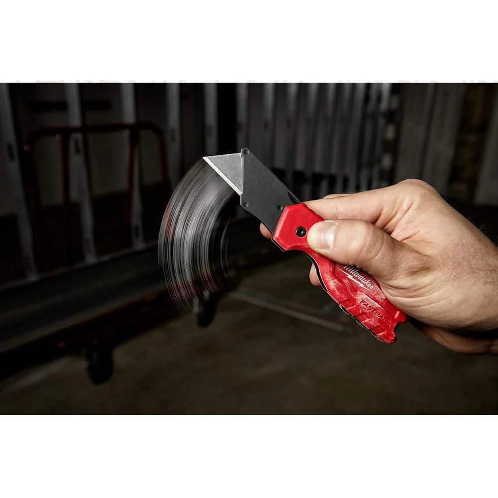 The Milwaukee FASTBACK Compact Folding Utility Knife features a press and flip mechanism for easy, 1-handed opening. The Milwaukee utility knife allows users to make quick, tool-free blade changes for maximum jobsite efficiency with a metal extension over the button to prevent accidental blade removal. The press and flip open utility knifes compact size allows for easy storing while a durable wire belt clip reduces pocket tearing. The small utility knife has a blade holder designed for scoring and includes a lanyard hole for convenient tethering.