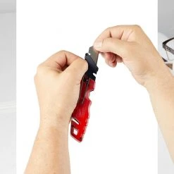 The Milwaukee FASTBACK Folding Utility Knife features a press and flip mechanism for easy, 1-handed opening. The Milwaukee FASTBACK Folding Utility Knife allows users to make quick, tool-free blade changes for maximum jobsite efficiency. The utility knife has an all metal body, an integrated gut hook and wire stripper for increased versatility. The folding utility knife is equipped with a durable wire belt clip to reduce pocket tearing and a blade holder designed for scoring. The knife has a lanyard hole for safe convenient tethering.