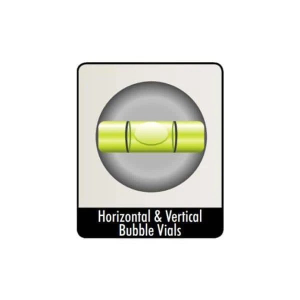 - Horizontal and vertical vials for easy leveling