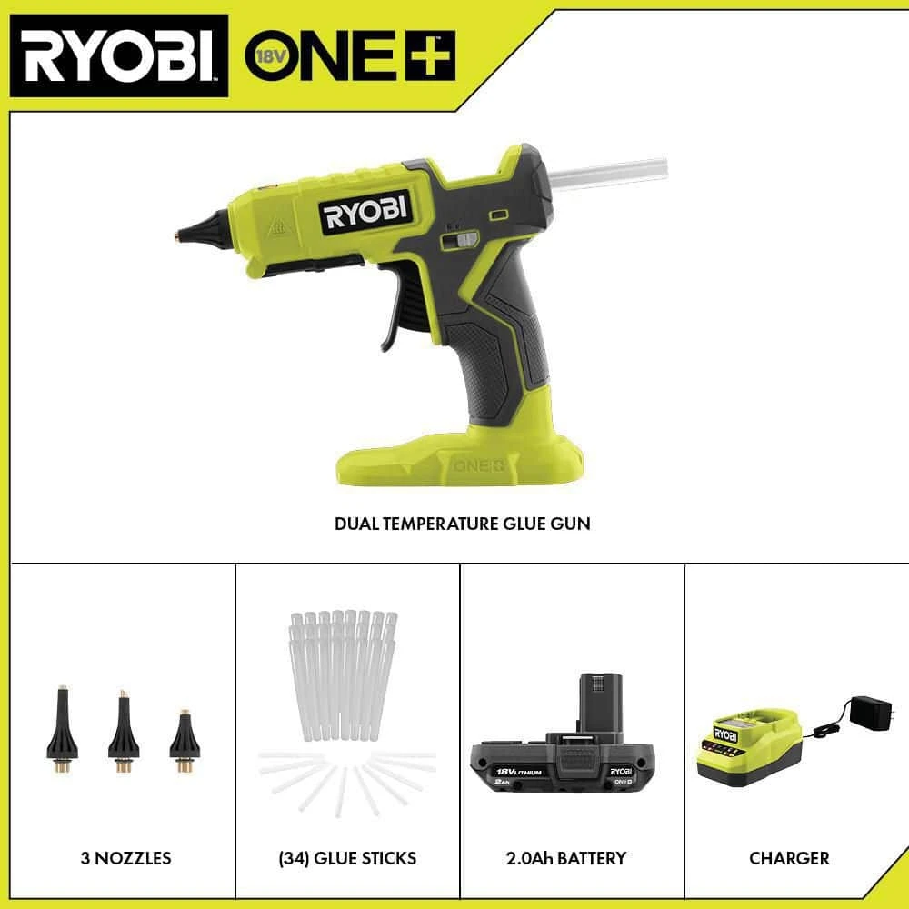 - Cordless Glue Gun: The included battery and charger are compatible with all RYOBI 18V ONE+ Tools