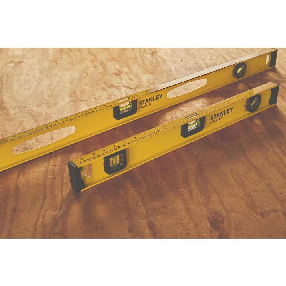 The end vial of this level rotates 180° for a range of situations. It is crafted from heavy-duty aluminum for rigidity and accuracy. A measuring scale is printed on the level.